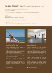 Yogi voyageuse, elle donne des cours collectifs et privés axés sur le mouvement habité et le travail de la respiration.